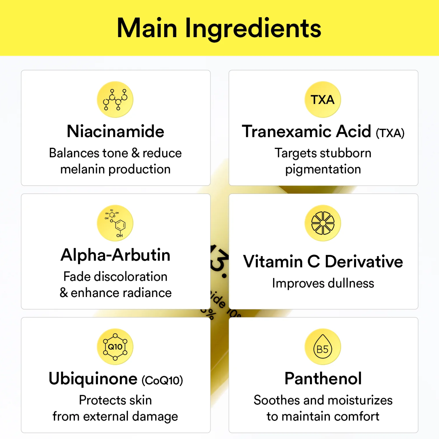 Water, Niacinamide, Glycerin, Tranexamic Acid, Hydrogenated Poly(C6-14 Olefin), 1,2-Hexanediol, Betaine, Polyglycerin-3, Caprylic/Capric Triglyceride, Cetearyl Alcohol, Alpha-Arbutin, Pentylene Glycol, Glyceryl Stearate, Magnesium Ascorbyl Phosphate, Sodium Ascorbyl Phosphate, Panthenol, Bisabolol, Hydrogenated Lecithin, Chlorella Vulgaris Extract, Glucose, Ammonium Acryloyldimethyltaurate/VP Copolymer, Carbomer, Tromethamine, Butylene Glycol, Fructooligosaccharides, Fructose, Ubiquinone, Xanthan Gum, Palmitic Acid, Stearic Acid, Sodium Hyaluronate, Beta-Glucan, Ethylhexylglycerin, Tocopherol.
